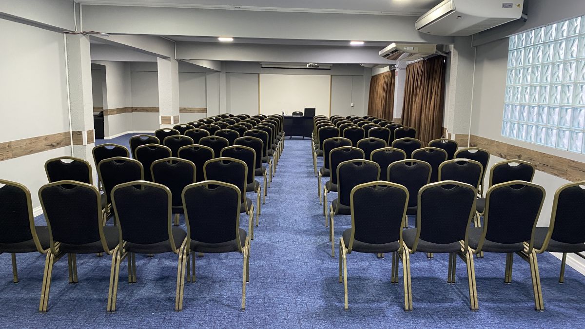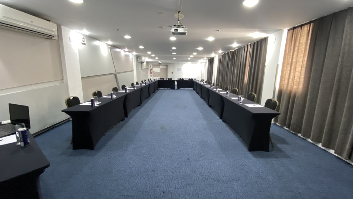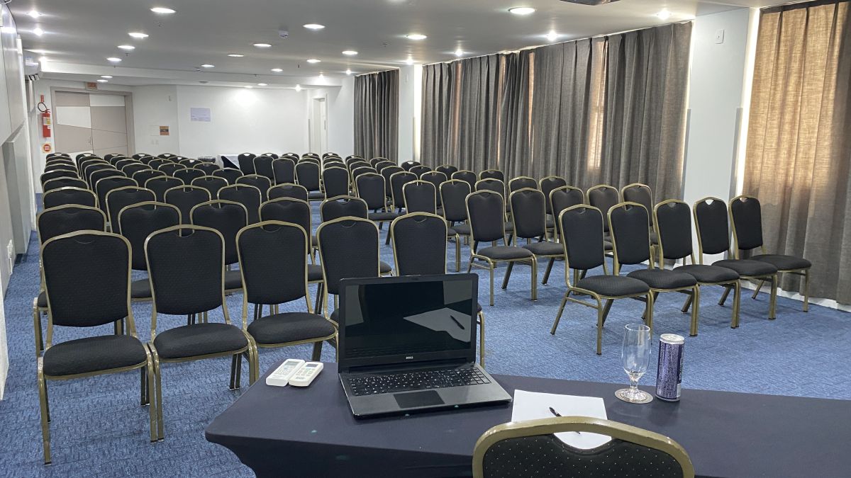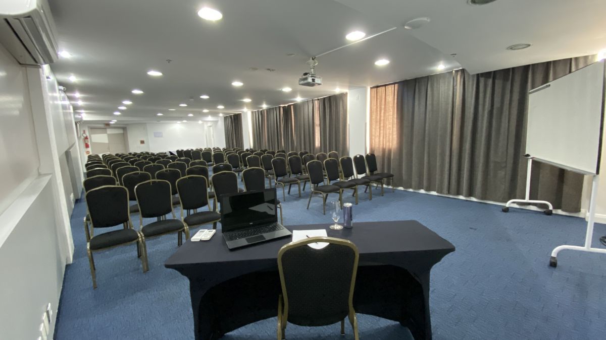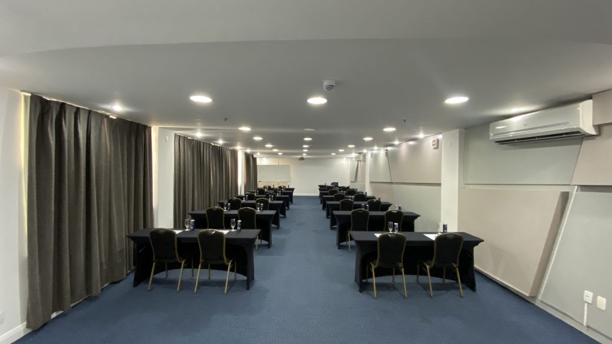 Acomoda até 120 pessoas em formato auditório e até 48 pessoas em formato "U" com mesas. Indicada para realizações de reuniões, cursos, treinamentos, palestras, encontros, workshops, showrooms, seleção e recrutamento. ***Sala localizada no Andar "C" no foyer do Mediterrâneo. Possui restrição de uso de segunda a sexta-feira das 18:45h às 22h, sem restrição nos finais de semana.