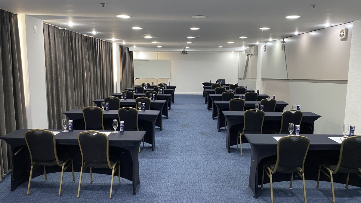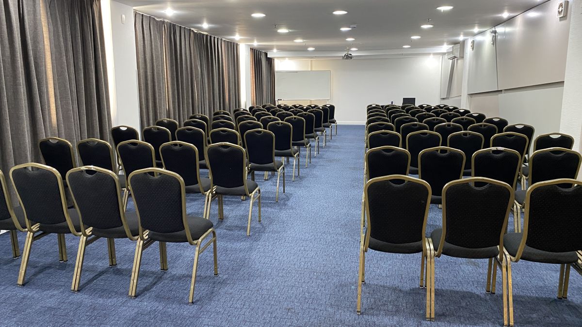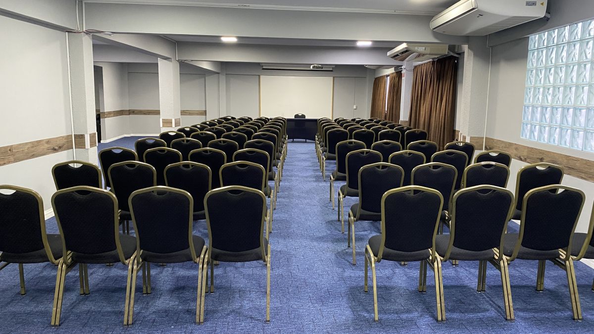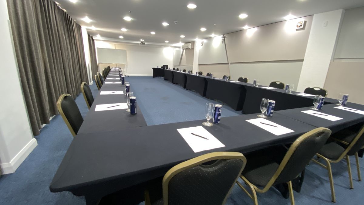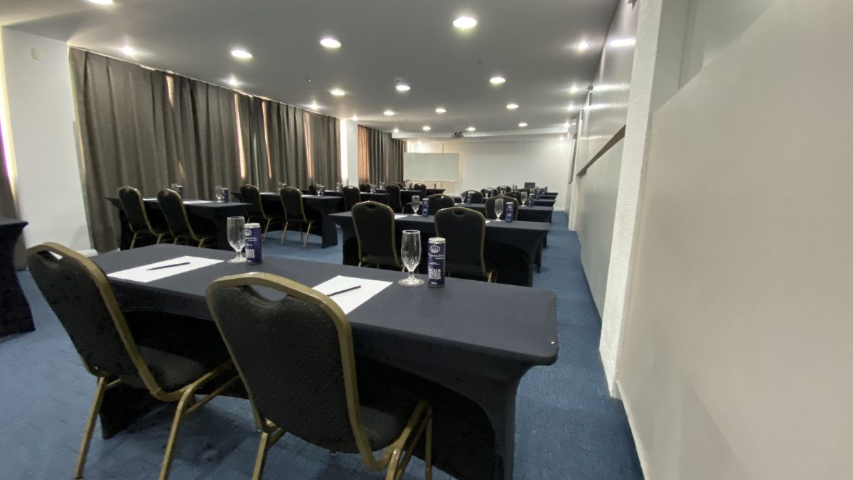 Acomoda até 120 pessoas em formato auditório e até 48 pessoas em formato "U" com mesas. Indicada para realizações de reuniões, cursos, treinamentos, palestras, encontros, workshops, showrooms, seleção e recrutamento. ***Sala localizada no Andar "C" no foyer do Mediterrâneo. Possui restrição de uso de segunda a sexta-feira das 18:45h às 22h, sem restrição nos finais de semana.