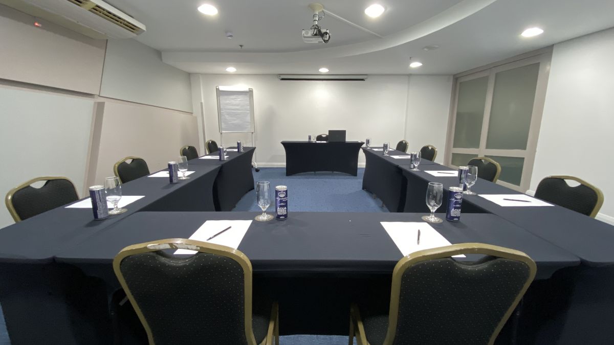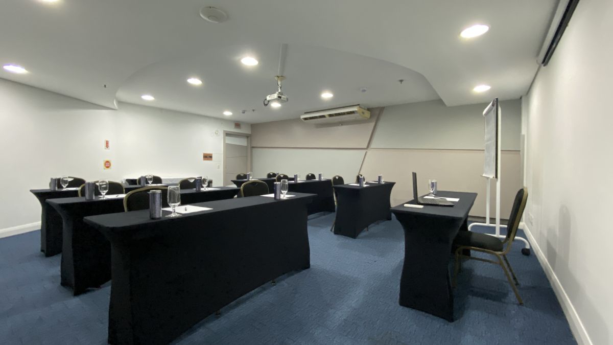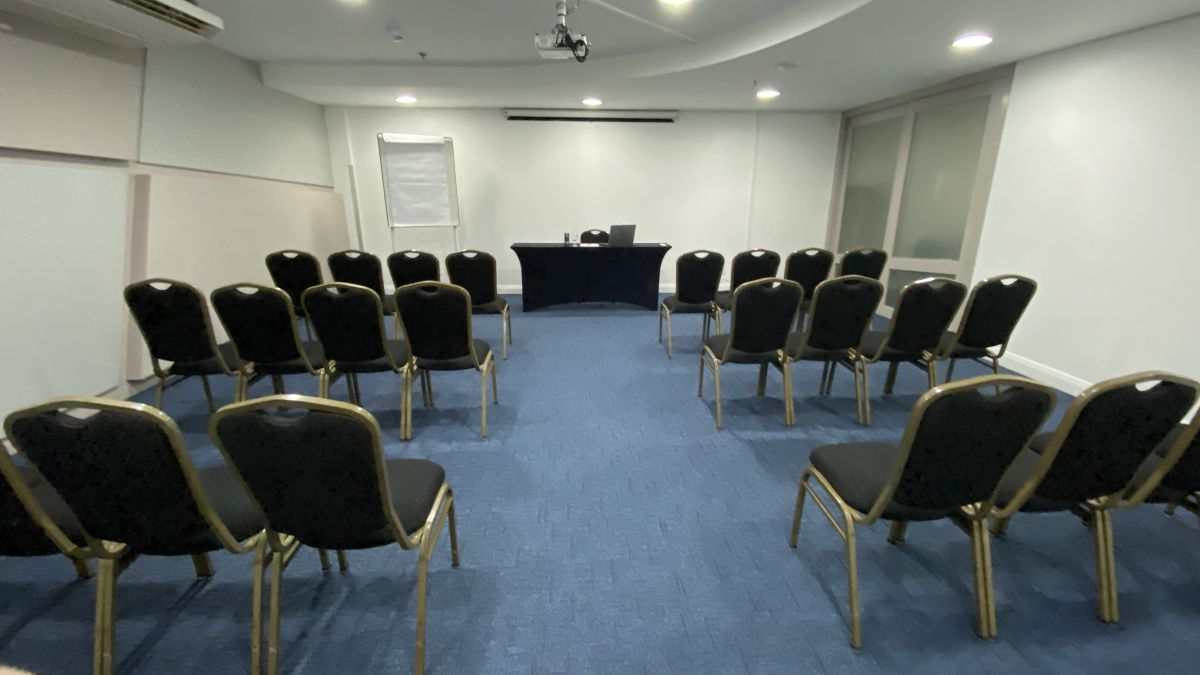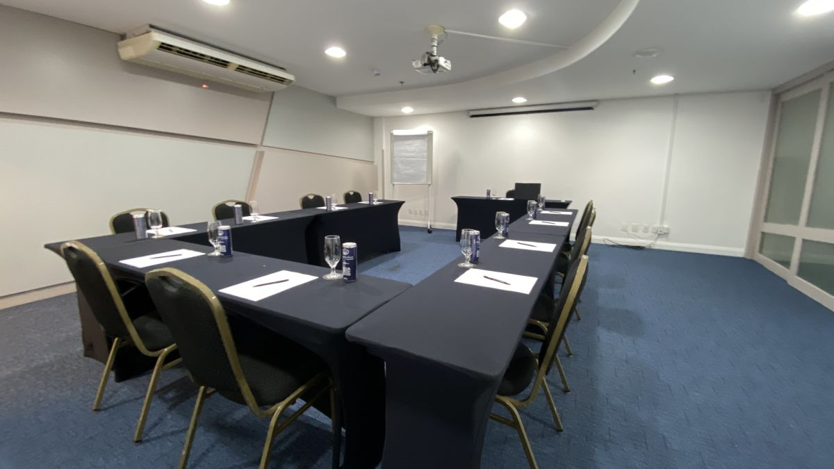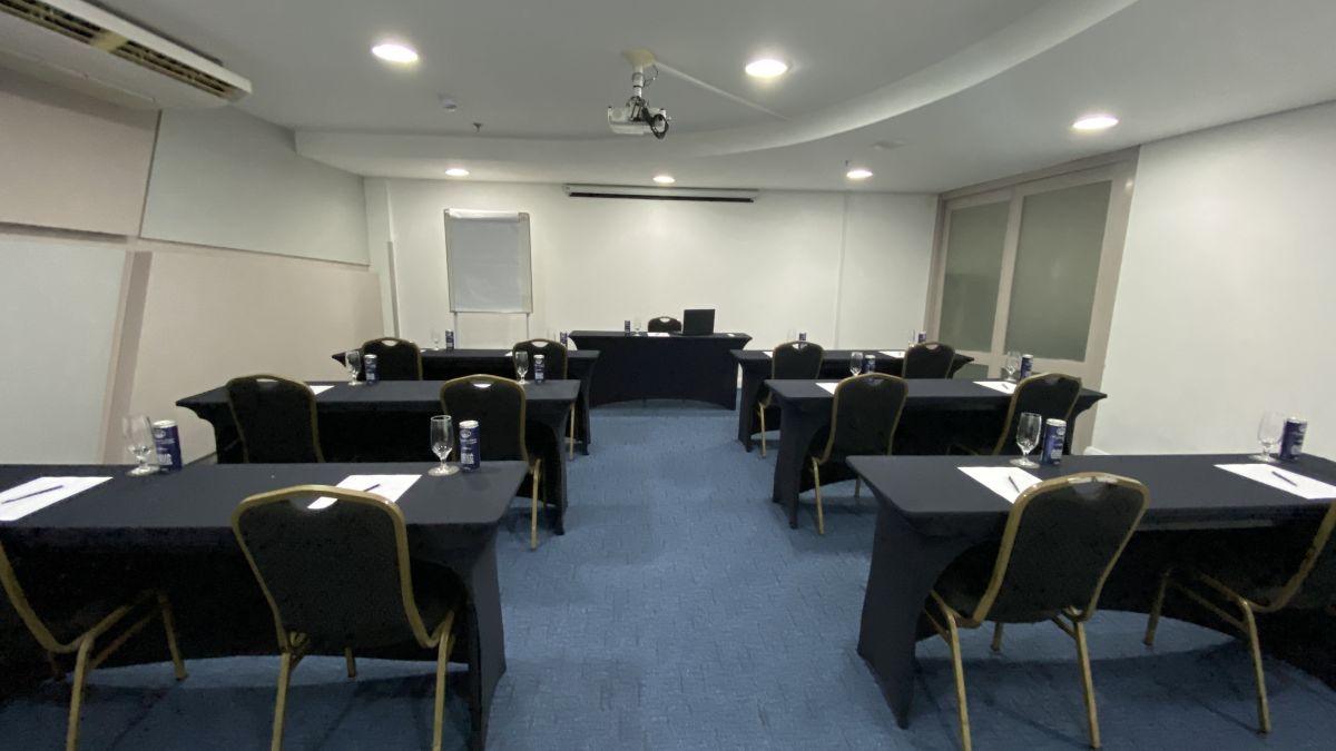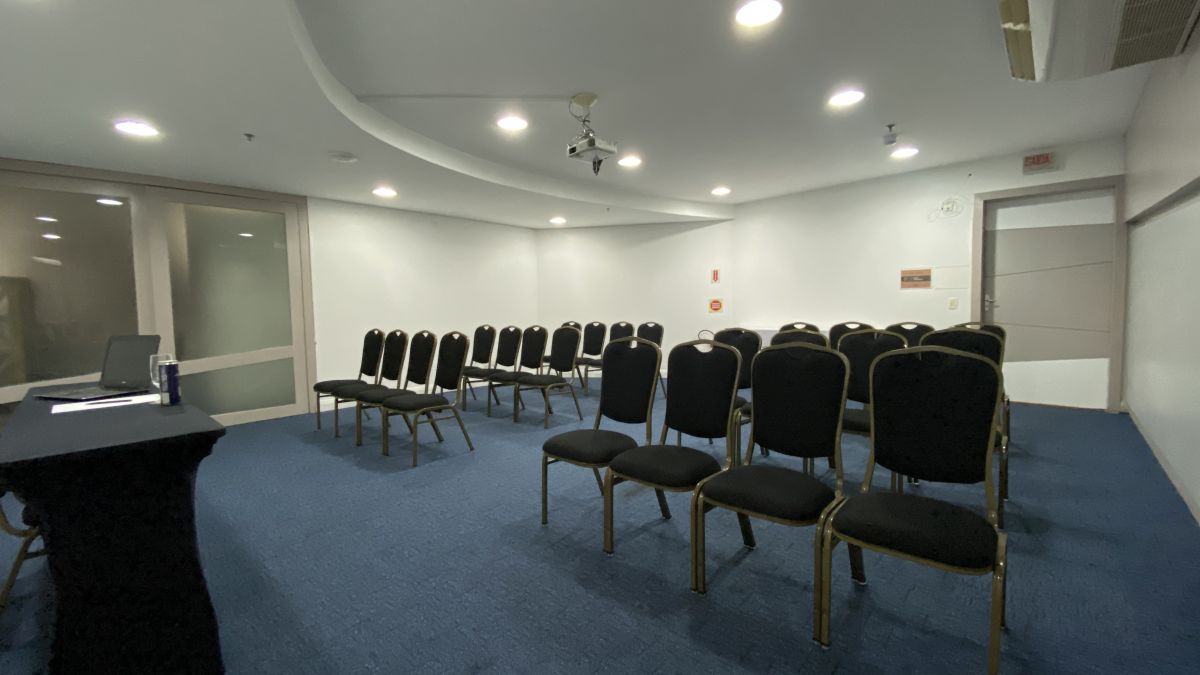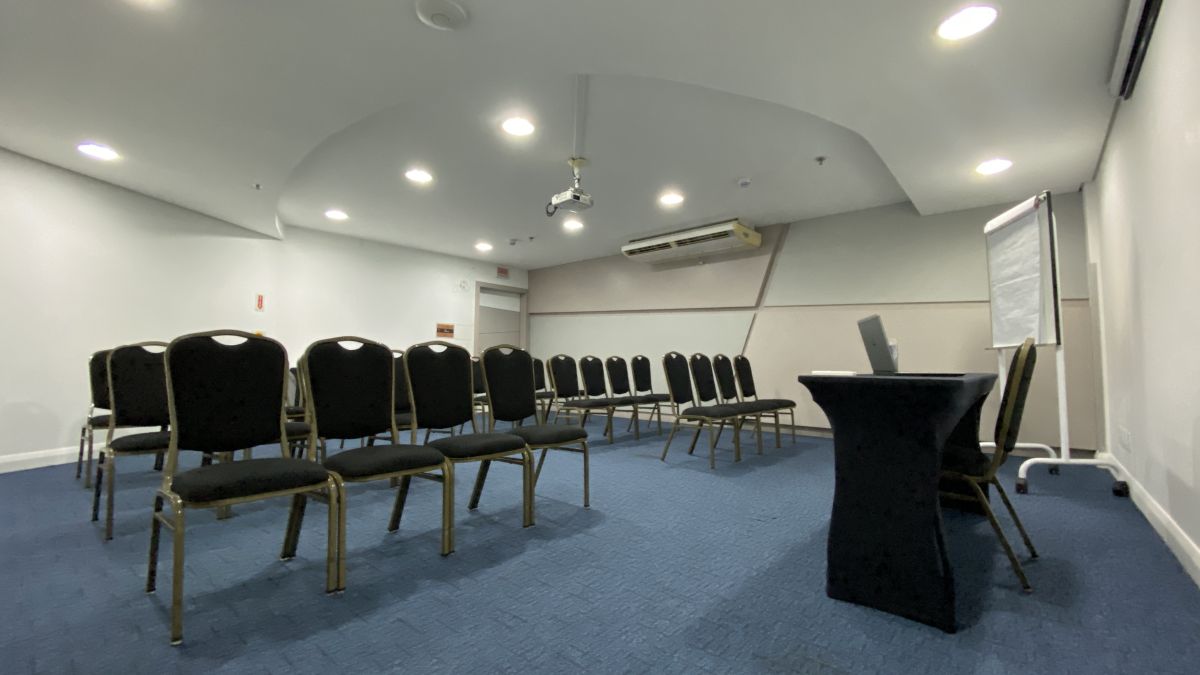 Con capacidad para 50 personas en formato auditorio y hasta 18 personas en formato “U” con mesas. Indicada para realizaciones de reuniones, cursos, capacitaciones, conferencias, encuentros, talleres, selección y reclutamiento.
