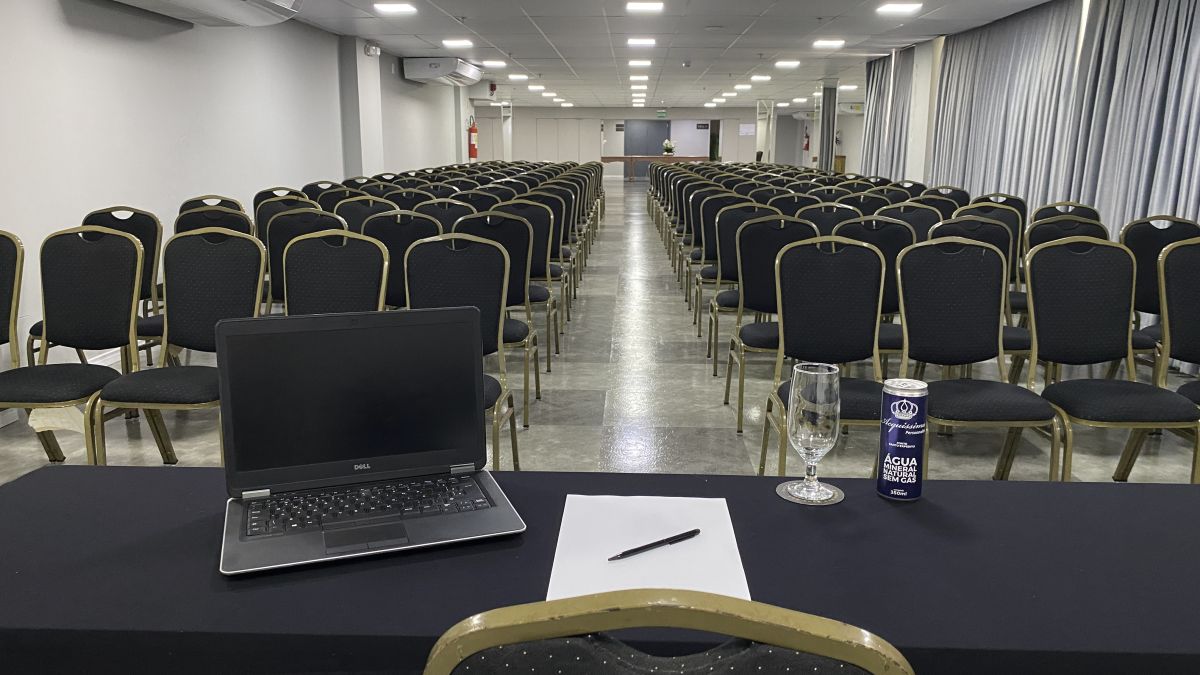 Incluso na tarifa: sala com ar condicionado, internet wi-fi, mesas de apoio do tipo prancha (1,53m x 0,46m ou 1,83m x 0,46m) com capas de lycra preta que cobrem toda a mesa, cadeiras com ou sem apoio de braço, uma extensão de luz, montagem no formato previamente solicitado e taxa de limpeza. Não incluso na tarifa: Equipamentos, decoração, serviço de alimentos e bebidas e estacionamento. Serviços terceirizados (Empresas parceiras): Equipamentos audiovisuais (Giga), Serviço de Sala e Coffee Break Hugani Restaurant com Almoço e Janta. Estacionamento (Sensus Park). Outros fornecedores mediante solicitação.