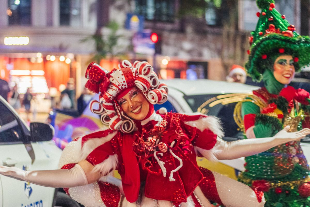 Clima de cidade: gente reunida, sorrisos e a sensação de Natal no ar.